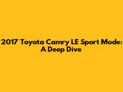 Hey guys! Let's dive into the 2017 Toyota Camry LE and explore its sport mode. A lot of you are probably wondering what it does and how it changes the driving experience. Well, buckle up, because we're about to break it all down in a way that's easy to understand. The 2017 Toyota Camry LE, a popular choice for its reliability and fuel efficiency, also packs a bit of fun with its available sport mode. While it's not a full-blown sports car, this feature adds a touch of excitement to your daily commute. So, what exactly does sport mode do? Essentially, it tweaks the car's settings to provide a more responsive and engaging driving experience. When you engage sport mode, the Camry's computer tells the transmission to hold gears longer, allowing the engine to rev higher before shifting. This means you get more power and acceleration when you need it, like when merging onto a highway or passing another car. Additionally, the throttle response becomes more sensitive, so even a slight tap on the accelerator results in a quicker reaction from the engine. This can make the car feel more agile and eager to move. Sport mode can be particularly useful in situations where you need a burst of speed or when driving on winding roads. It gives you more control over the car's performance and makes the overall driving experience more enjoyable. However, it's important to note that sport mode also affects fuel economy. Because the engine is working harder and revving higher, you'll likely see a decrease in your MPG compared to driving in normal mode. Therefore, it's best to use sport mode judiciously and switch back to normal mode when you're cruising on the highway or driving in stop-and-go traffic.