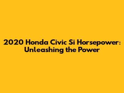 2020 Honda Civic Si Horsepower: Unleashing The Power