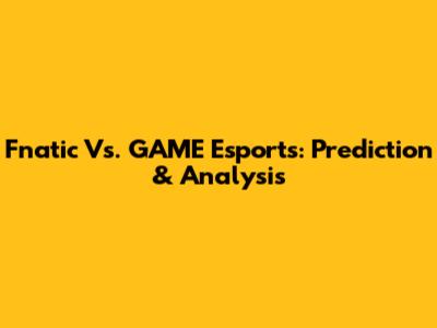 Fnatic Vs. GAME Esports: Prediction & Analysis