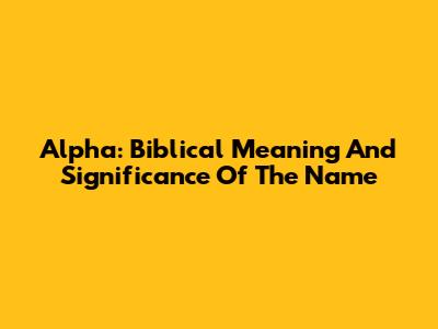 Alpha: Biblical Meaning And Significance Of The Name