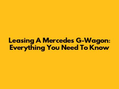 Leasing A Mercedes G-Wagon: Everything You Need To Know