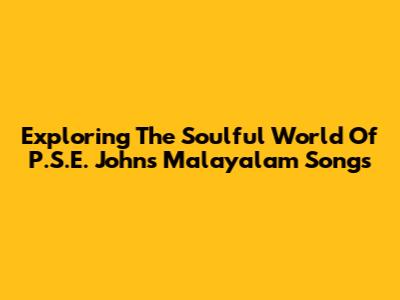 Exploring The Soulful World Of P.S.E. John's Malayalam Songs