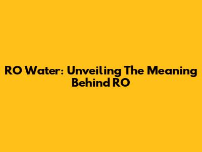 RO Water: Unveiling The Meaning Behind RO
