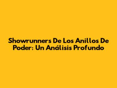 Showrunners De 'Los Anillos De Poder': Un Análisis Profundo