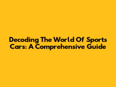 Decoding The World Of Sports Cars: A Comprehensive Guide