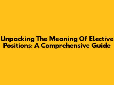 Unpacking The Meaning Of Elective Positions: A Comprehensive Guide