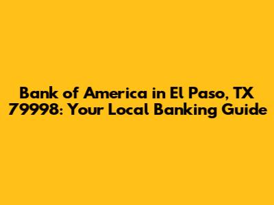 Hey guys! Looking for a Bank of America branch in El Paso, TX, specifically in the 79998 area? You've come to the right place. This guide will give you all the information you need to find the nearest branch, understand the services they offer, and make your banking experience as smooth as possible. Whether you're a long-time resident or new to the area, knowing your local banking options is super important. Let's dive in!