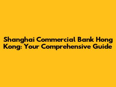 Shanghai Commercial Bank Hong Kong: Your Comprehensive Guide