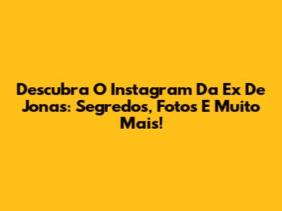 Descubra O Instagram Da Ex De Jonas: Segredos, Fotos E Muito Mais!