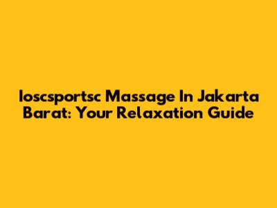Ioscsportsc Massage In Jakarta Barat: Your Relaxation Guide