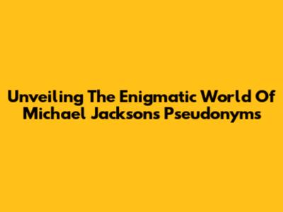 Unveiling The Enigmatic World Of Michael Jackson's Pseudonyms