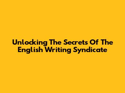 Unlocking The Secrets Of The English Writing Syndicate