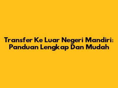 Transfer Ke Luar Negeri Mandiri: Panduan Lengkap Dan Mudah
