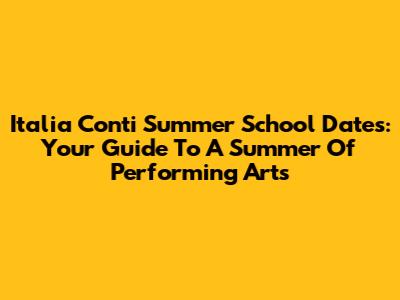 Italia Conti Summer School Dates: Your Guide To A Summer Of Performing Arts