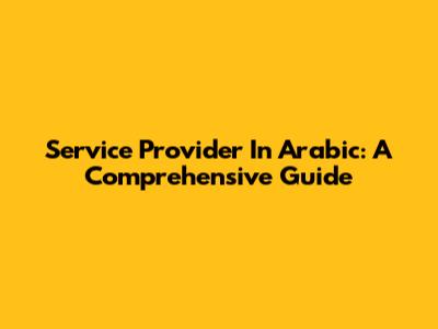 Service Provider In Arabic: A Comprehensive Guide