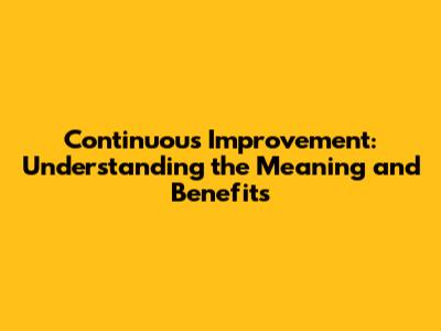What is Continuous Improvement?