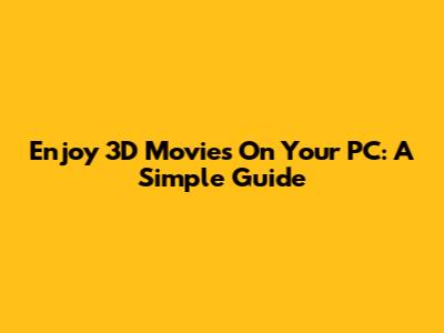 Enjoy 3D Movies On Your PC: A Simple Guide