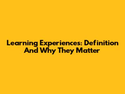 Learning Experiences: Definition And Why They Matter
