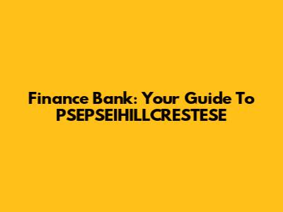 Finance Bank: Your Guide To PSEPSEIHILLCRESTESE
