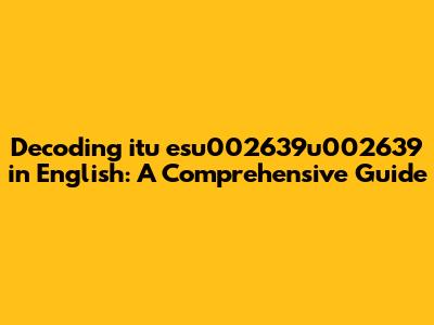 Decoding 'itu Esu002639u002639' In English: A Comprehensive Guide