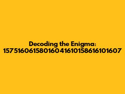 Another possibility is that 15751606158016041610158616101607 is an encoded message. Encoding is the process of converting data into a different format, often to protect it or to transmit it more efficiently. There are countless encoding schemes, ranging from simple ciphers to complex cryptographic algorithms. If our sequence is an encoded message, we'll need to figure out what encoding scheme was used.
