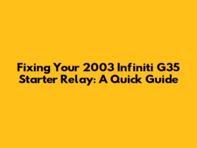 Fixing Your 2003 Infiniti G35 Starter Relay: A Quick Guide