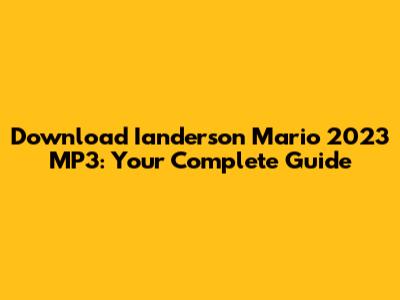 Download Ianderson Mario 2023 MP3: Your Complete Guide
