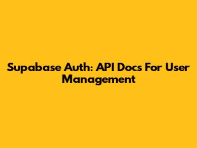 Supabase Auth: API Docs For User Management