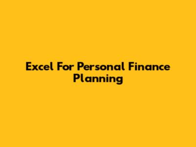 Excel For Personal Finance Planning