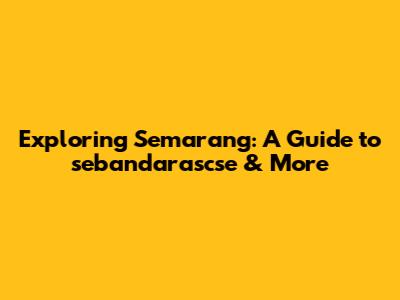 Hey guys! Semarang, a vibrant city on the north coast of Java, Indonesia, is a treasure trove of cultural experiences, historical landmarks, and mouth-watering cuisine. If you're planning a trip to Semarang, or even just curious about this fascinating city, you've come to the right place! This guide will take you through some of the must-see spots, with a special focus on understanding areas like "sebandarascse" and how they fit into the larger Semarang picture.