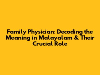 Family Physician Meaning in Malayalam: The Core Concept