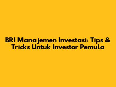 BRI Manajemen Investasi: Tips & Tricks Untuk Investor Pemula