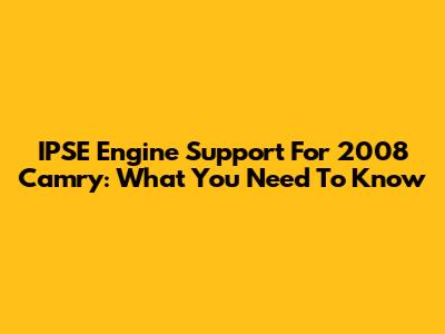 IPSE Engine Support For 2008 Camry: What You Need To Know