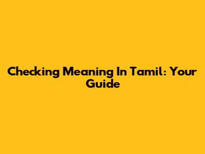 Checking Meaning In Tamil: Your Guide