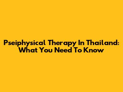 Pseiphysical Therapy In Thailand: What You Need To Know