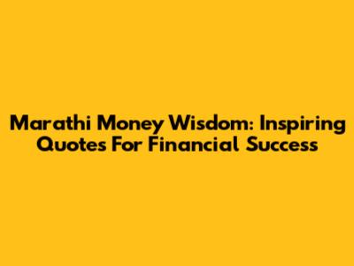 Marathi Money Wisdom: Inspiring Quotes For Financial Success