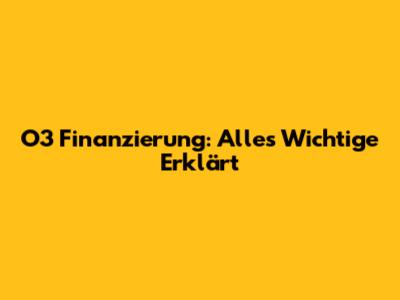 O3 Finanzierung: Alles Wichtige Erklärt