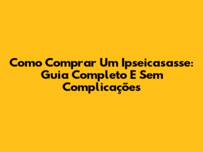 Como Comprar Um Ipseicasasse: Guia Completo E Sem Complicações