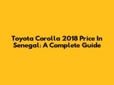 Toyota Corolla 2018 Price In Senegal: A Complete Guide