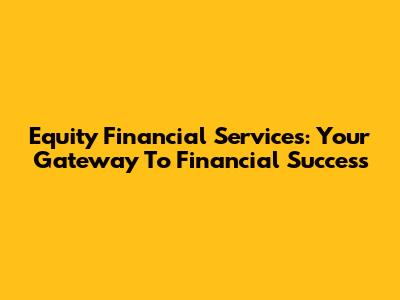 Equity Financial Services: Your Gateway To Financial Success