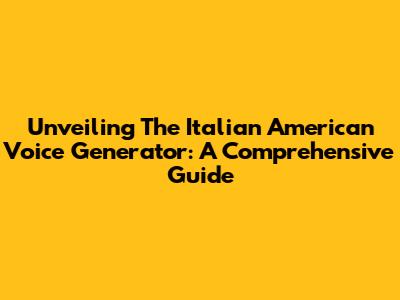 Unveiling The Italian American Voice Generator: A Comprehensive Guide