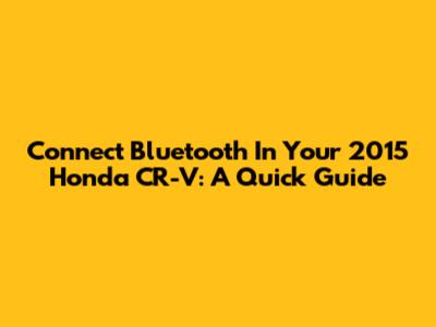 Connect Bluetooth In Your 2015 Honda CR-V: A Quick Guide