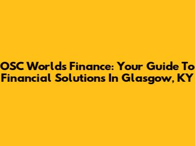 OSC Worlds Finance: Your Guide To Financial Solutions In Glasgow, KY