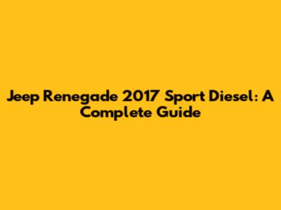 Jeep Renegade 2017 Sport Diesel: A Complete Guide