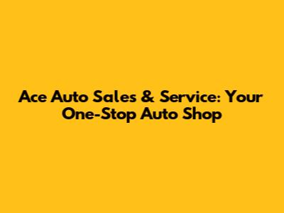 Ace Auto Sales & Service: Your One-Stop Auto Shop