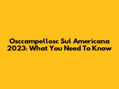 Osccampellosc Sul Americana 2023: What You Need To Know
