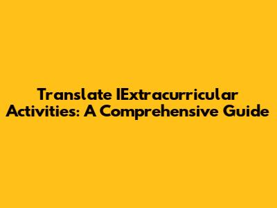 Translate IExtracurricular Activities: A Comprehensive Guide