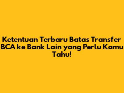 Batas transfer BCA ke bank lain adalah informasi krusial yang wajib diketahui oleh setiap nasabah yang sering melakukan transaksi antar bank. Guys, dalam era digital seperti sekarang ini, aktivitas transfer antar bank sudah menjadi kebutuhan sehari-hari. Mulai dari membayar tagihan, mengirim uang ke keluarga, hingga keperluan bisnis, semuanya membutuhkan transfer. Bank Central Asia (BCA) sebagai salah satu bank terbesar di Indonesia, menyediakan layanan transfer antar bank yang praktis. Namun, ada beberapa hal yang perlu diperhatikan, terutama mengenai limit atau batas transfer BCA ke bank lain. Nah, artikel ini akan membahas secara mendalam mengenai ketentuan terbaru batas transfer BCA ke bank lain, biaya transfer, cara transfer, dan tips agar transaksi kamu berjalan lancar. Jadi, simak terus ya!