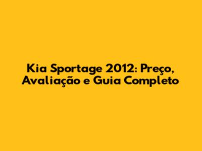 Kia Sportage 2012: Preço, Avaliação E Guia Completo