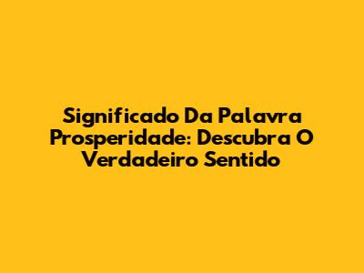 Significado Da Palavra Prosperidade: Descubra O Verdadeiro Sentido